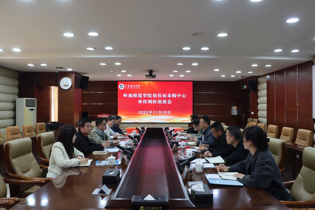 11月28日,岭南师范学院招投标采购中心主任李亚九一行来今年会官网交流。学校招标与采购中心主任赵子雄主持座谈会。岭南师范学院招投标采购中心副主任刘宇靖及相关科室负责人、今年会官网招标与采购中心全体干部参加座谈。