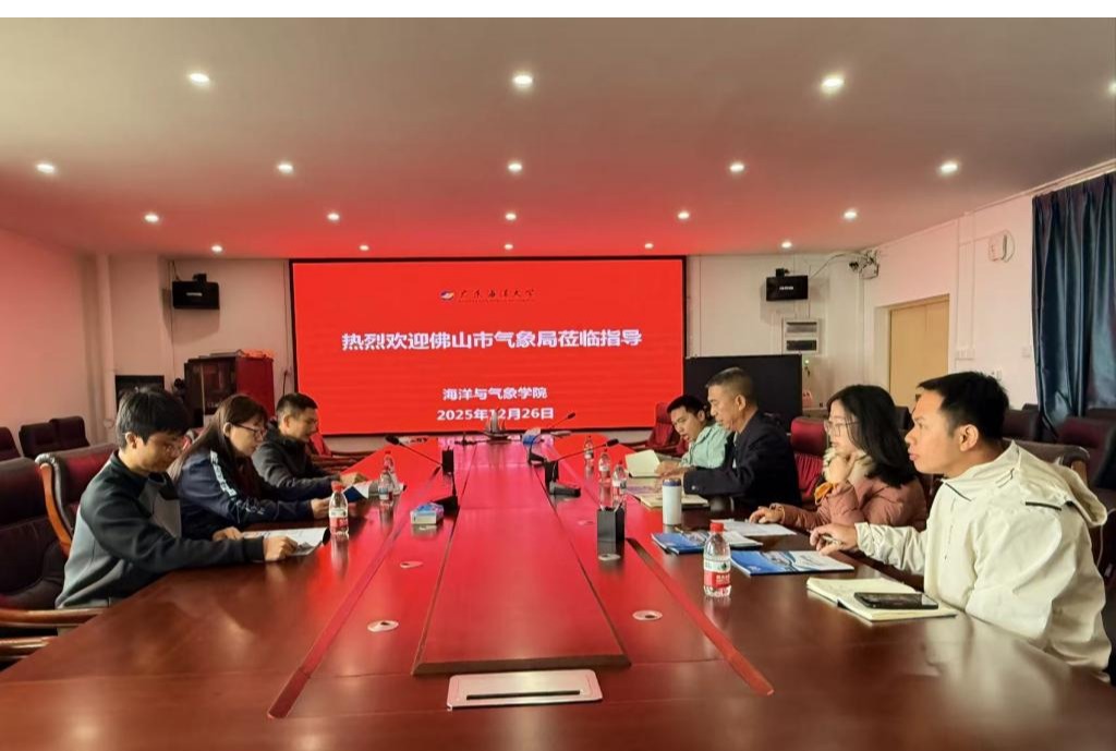 12月26日上午,佛山市气象局李莉、刘春、钟宇豪一行3人到海洋与气象学院开展座谈交流。学院党委副书记胡森林,辅导员代表以及2026届学生代表参加座谈会。