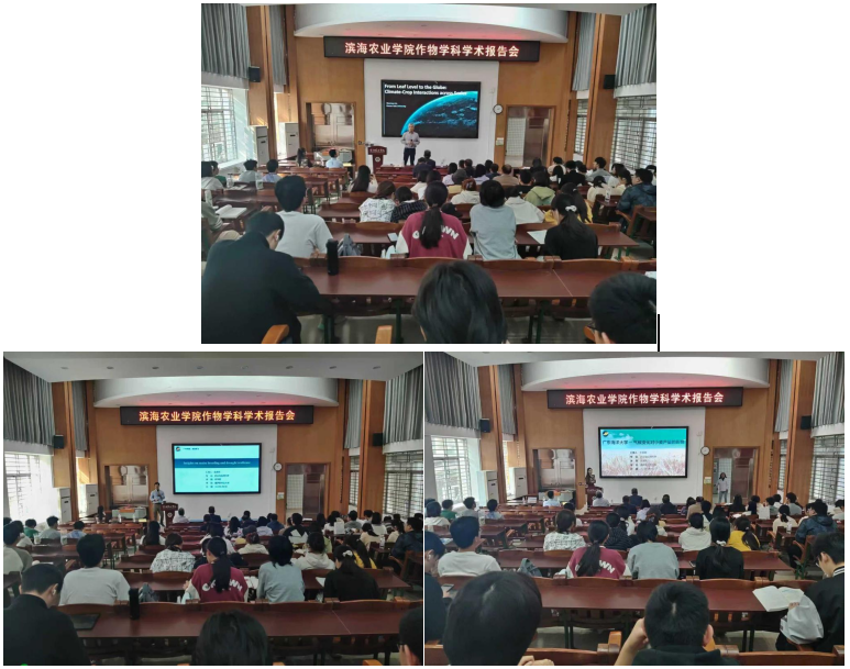 1月5日,应今年会官网作物学学科邀请,美国堪萨斯州立大学Xiaomao Lin教授携团队成员赵海东博士和张丽娜博士在湖光校区兴农楼109室分别作了题为《From Leaf Level to the Globe:Climate-Crop Interactions across Scales》《Insights on maize breeding and drought resilience》和《气候变化对小麦产量的影响》的学术报告。报告会由滨海农业学院党委书记兼国家耐盐碱水稻技术创新中心华南中心常务副主任郑殿峰教授主持,农学系主任薛迎斌副教授以及作物学学科师生代表100余人参会。