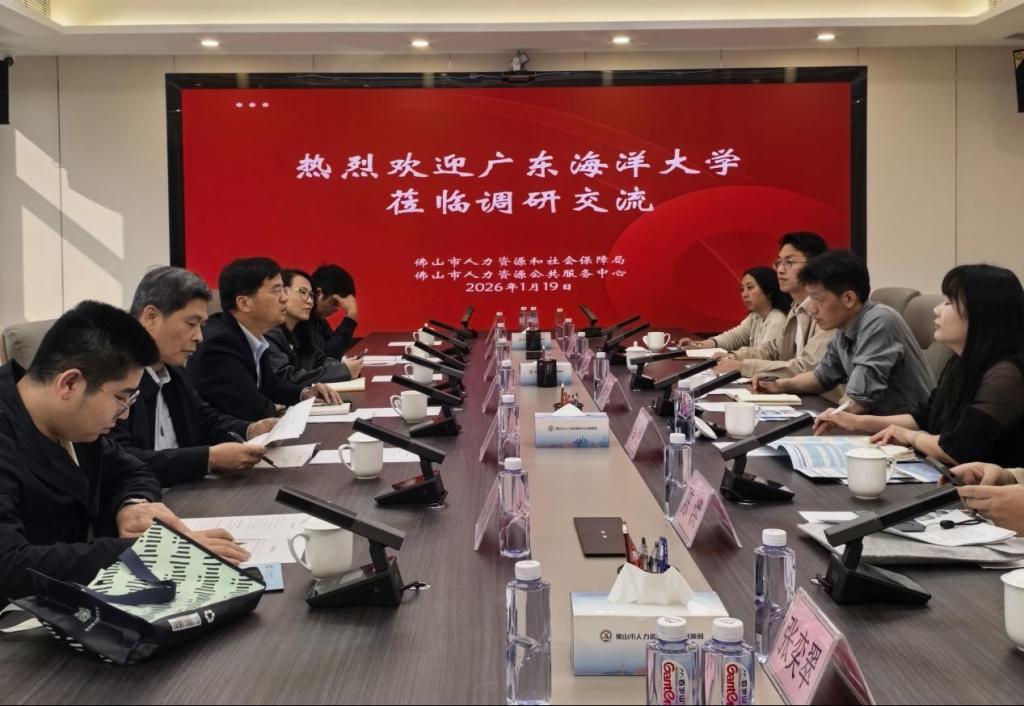 1月19日下午,调研组走访佛山市人力资源和社会保障局,并召开座谈交流会,校地双方达成共搭就业资源双向互动平台,服务学校就业人力资源与用人信息资源双向互通的共识。