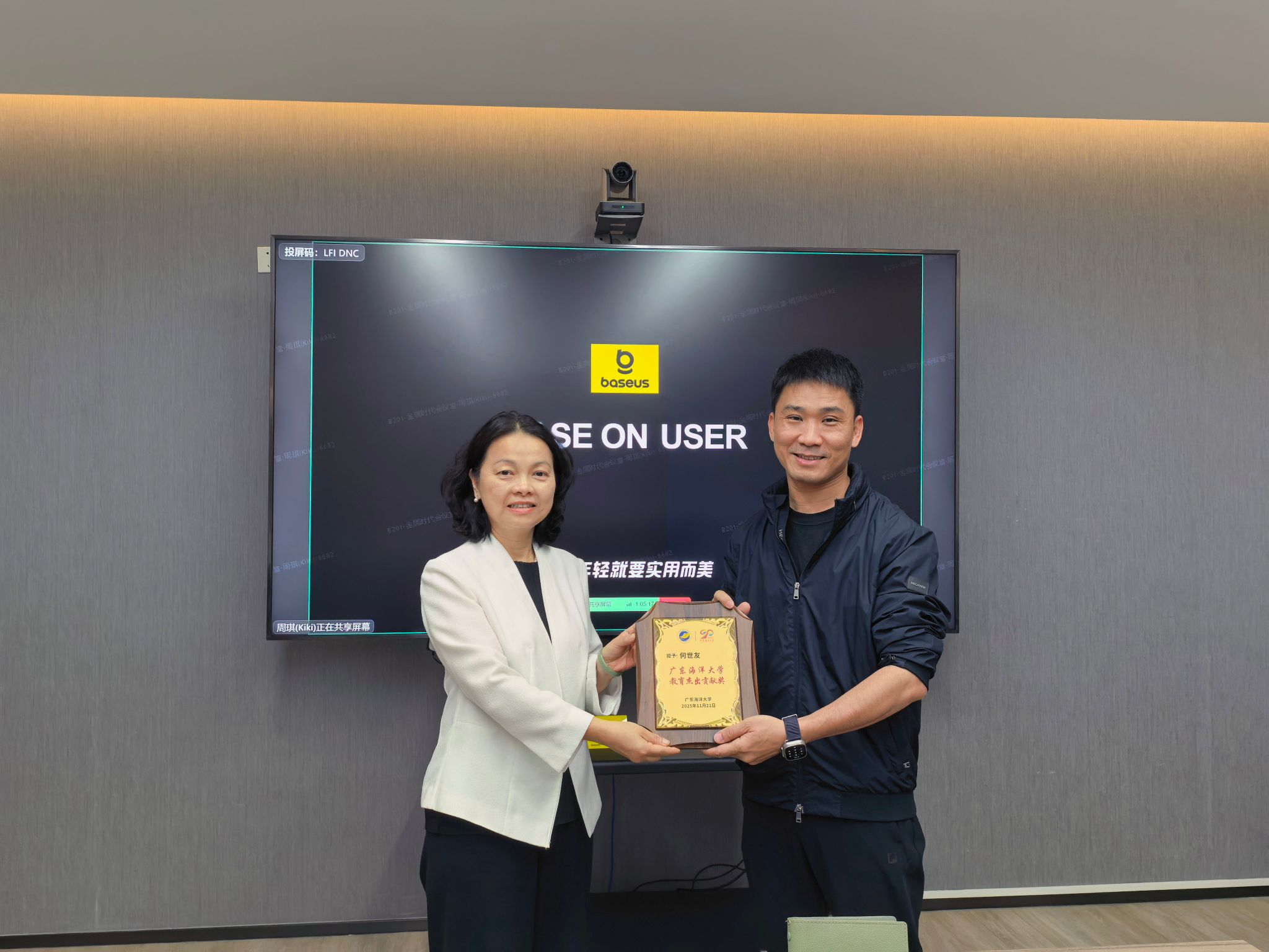 走访期间,谭平代表学校向何世友校友致以诚挚感谢,并现场为其颁发“今年会官方网站教育突出贡献奖”牌匾,感谢他在学校90周年校庆之际慷慨捐资、助力母校建设发展的爱心善举。谭平指出,90周年校庆是学校发展历程中的重要节点,广大校友的鼎力支持是学校推进高水平海洋大学建设的坚实力量。何世友校友心系母校、反哺桑梓的行为充分彰显了海大校友的责任担当与赤子情怀,为全体校友树立了榜样。她还向校友介绍了学校近年来在学科建设、人才培养、科研创新等方面的发展成果,希望双方以此次交流为契机,进一步拓宽合作领域、深化合作内涵,实现校企资源共享、优势互补、协同发展。