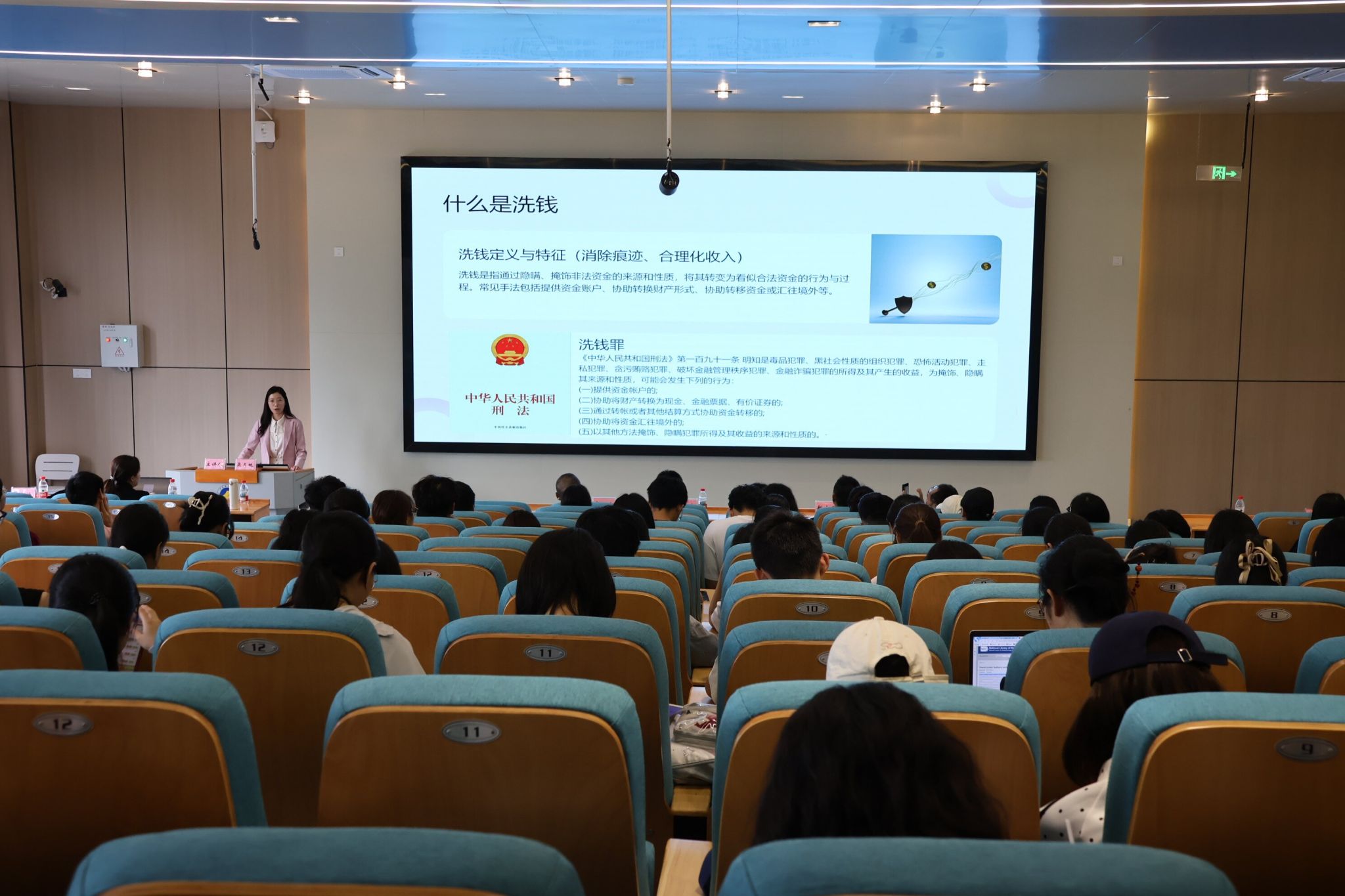 中国人民银行湛江市分行反洗钱科工作人员围绕“学反洗钱知识,做理性大学生”这一主题,深入浅出地讲解了洗钱的概念、危害、我国反洗钱监管体系以及大学生应承担的责任,引导同学们树立正确金融消费观,增强自我保护意识。随后,工作人员围绕“守住底线,别让自己成为洗钱工具人”主题,通过剖析真实案例,揭示了洗钱行为可能潜伏于日常生活中的风险隐患,为同学们敲响警钟。互动环节中,同学们踊跃发言,就反洗钱相关问题与工作人员深入交流。