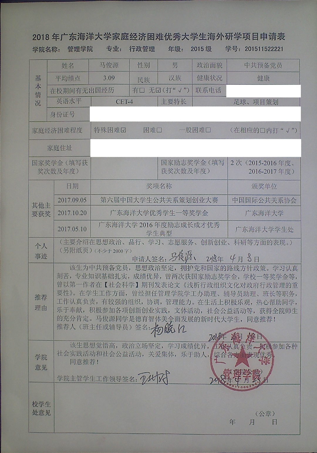 附:1、2018年“助梦扬帆”资助高校家庭经济困难优秀大学生海外研学项目申请表