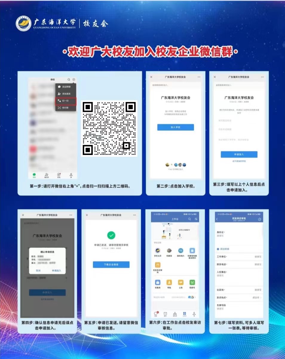 欢迎返回母校!返校需提前预约,预约通道已经开放!加入“海大校友”企业微信即可完成预约,请看下图了解详细的预约流程。