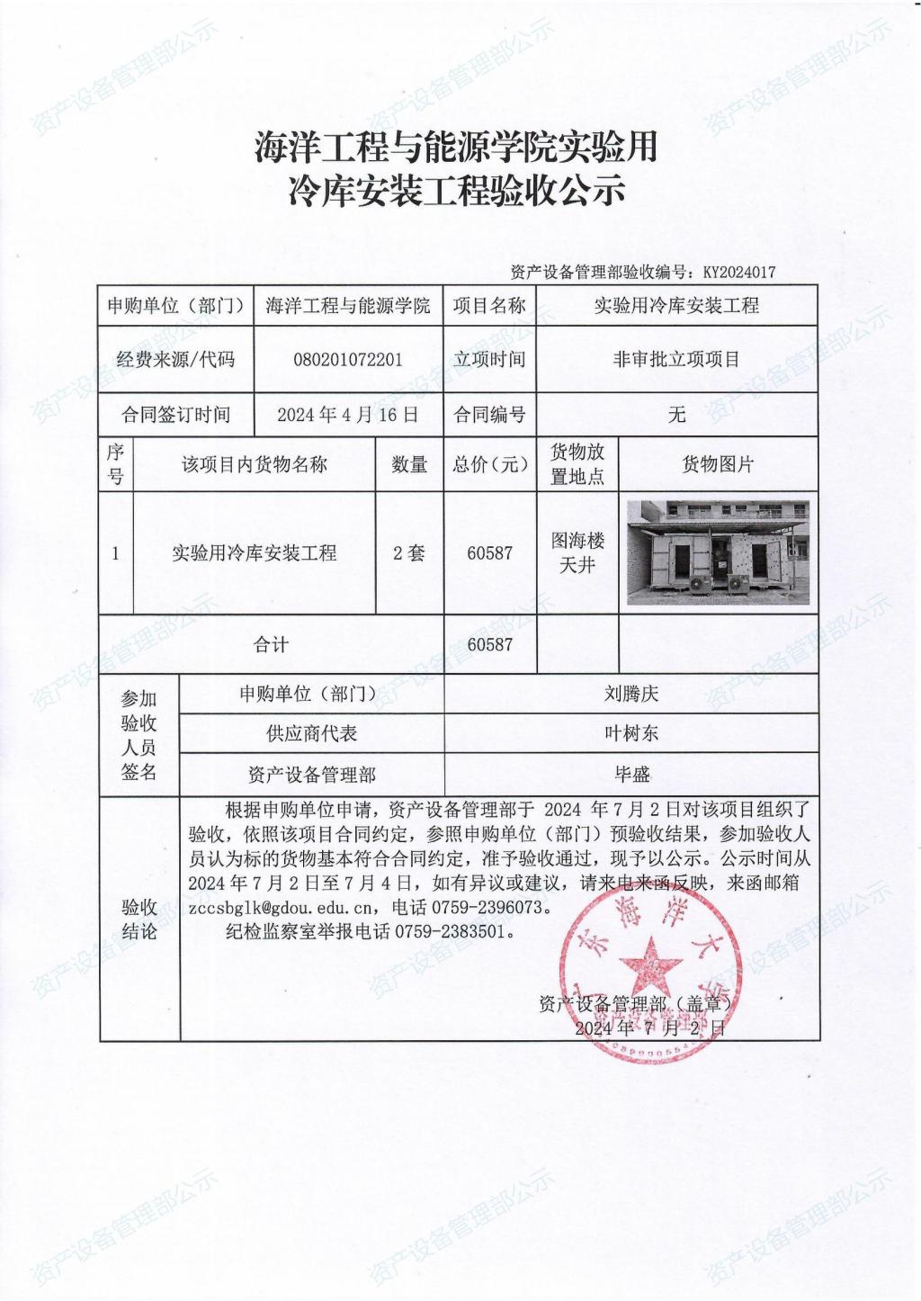 海洋工程与能源学院实验用冷库安装工程验收公示