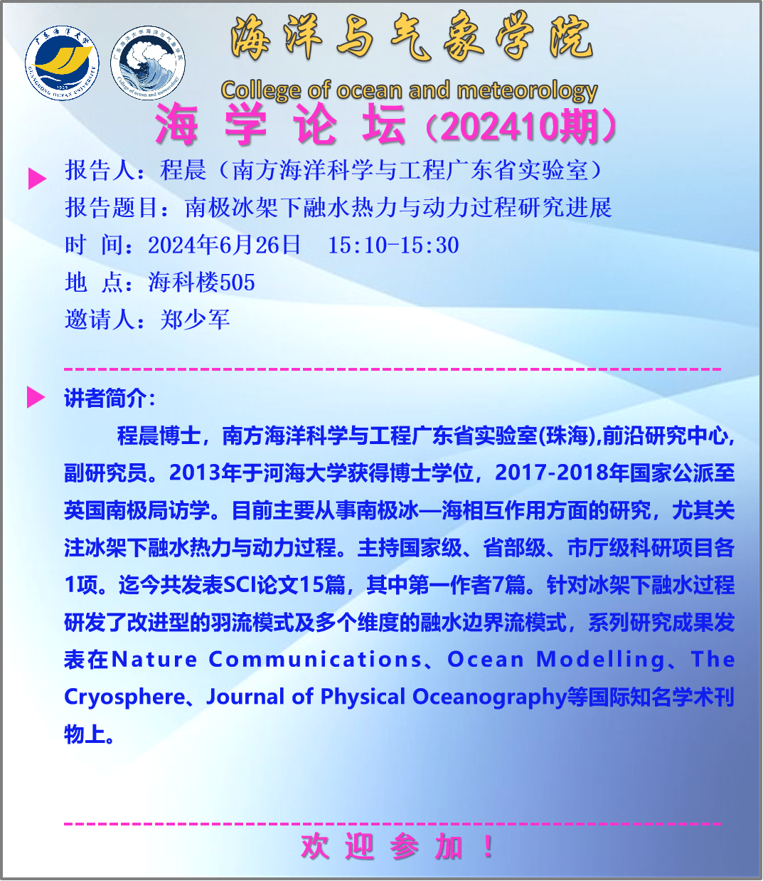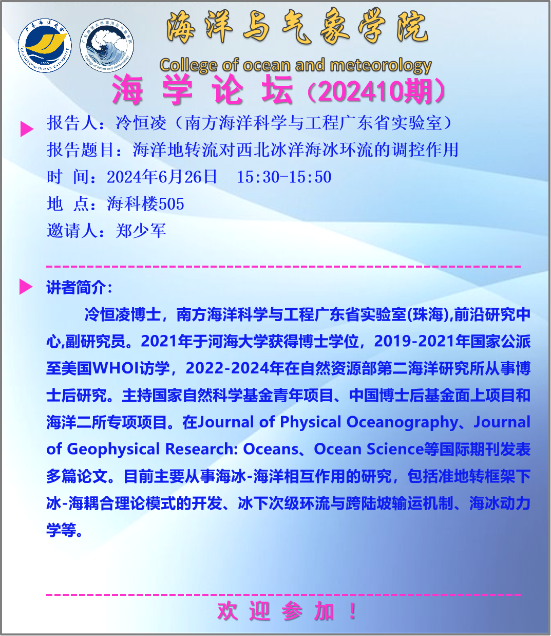 海洋与气象学院“海学论坛”(202410期)