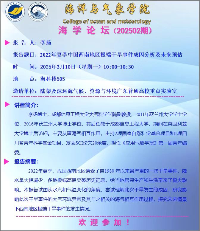 海洋与气象学院“海学论坛”(202502期)