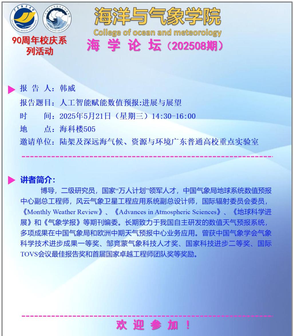 海洋与气象学院“海学论坛”(202508期)