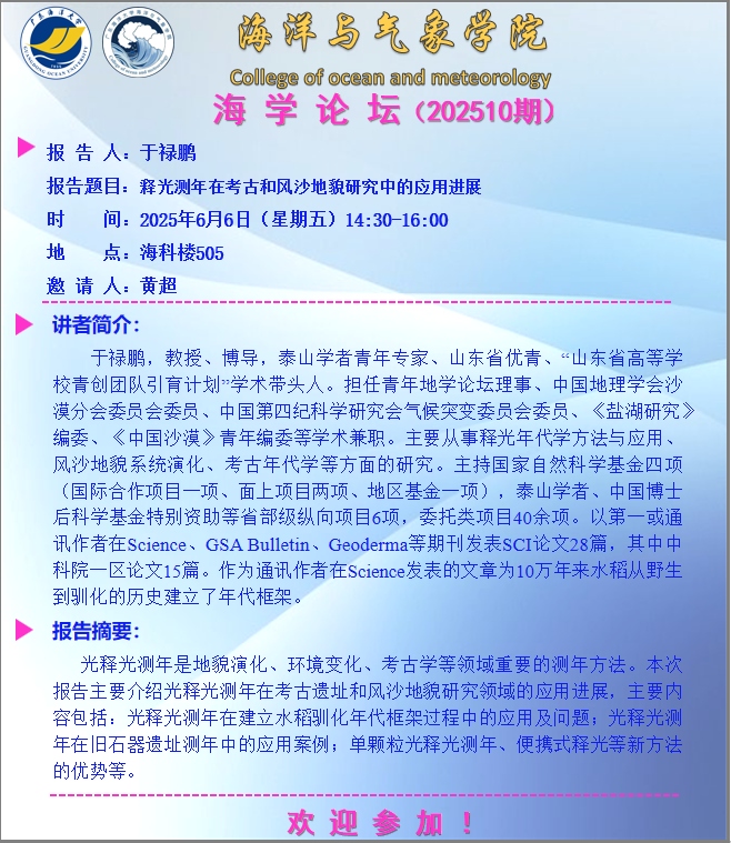 海洋与气象学院“海学论坛”(202510期)