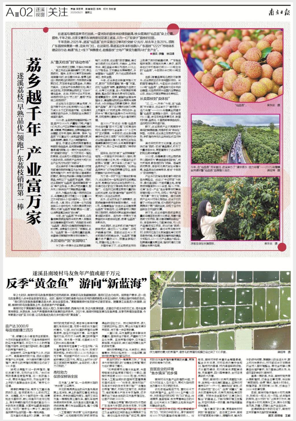 【南方日报】报道学校团队技术支持南坡村推广“池塘生态养殖”模式