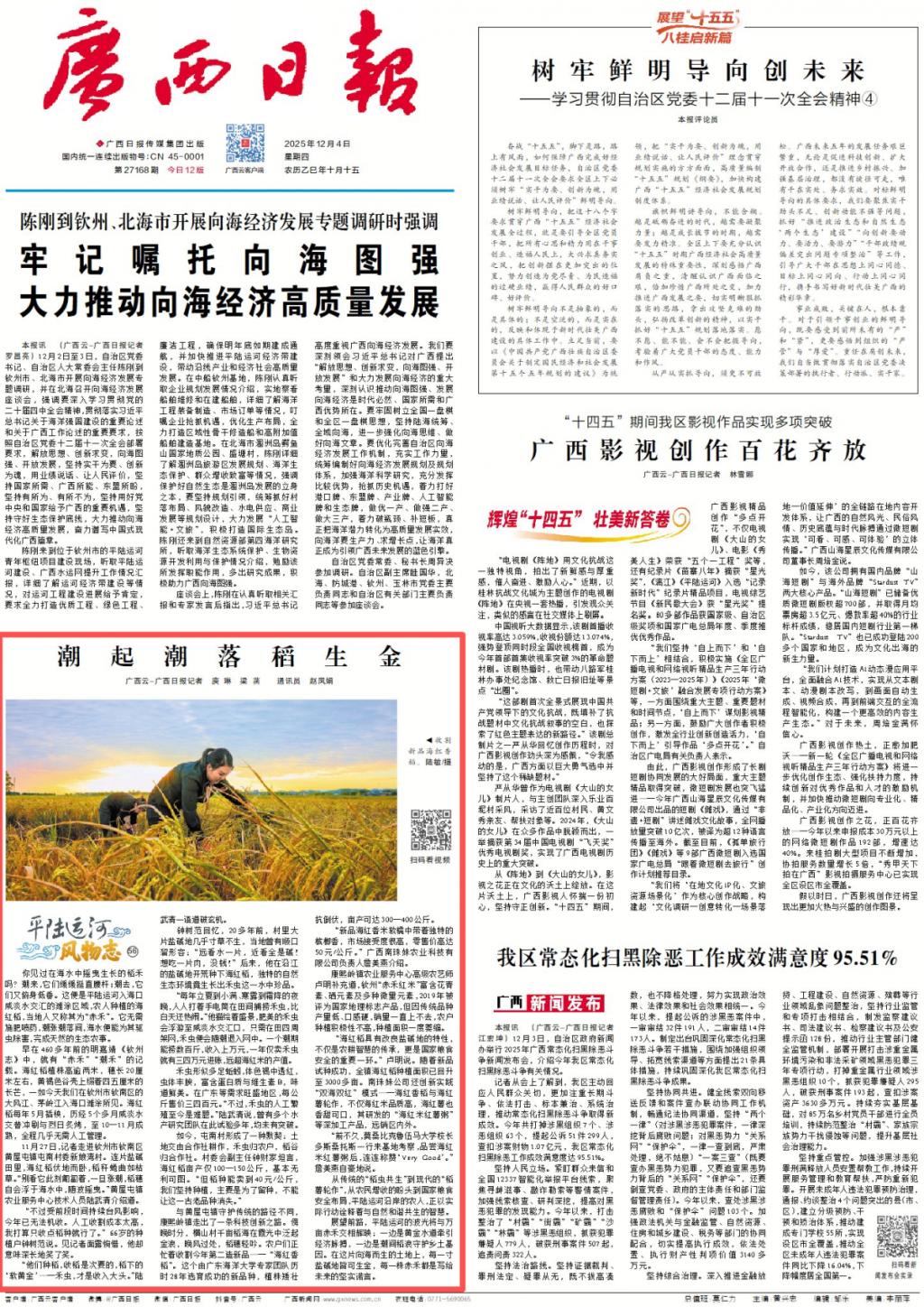 广西日报2025年12月4日头版:《平陆运河风物志丨潮起潮落稻生金》