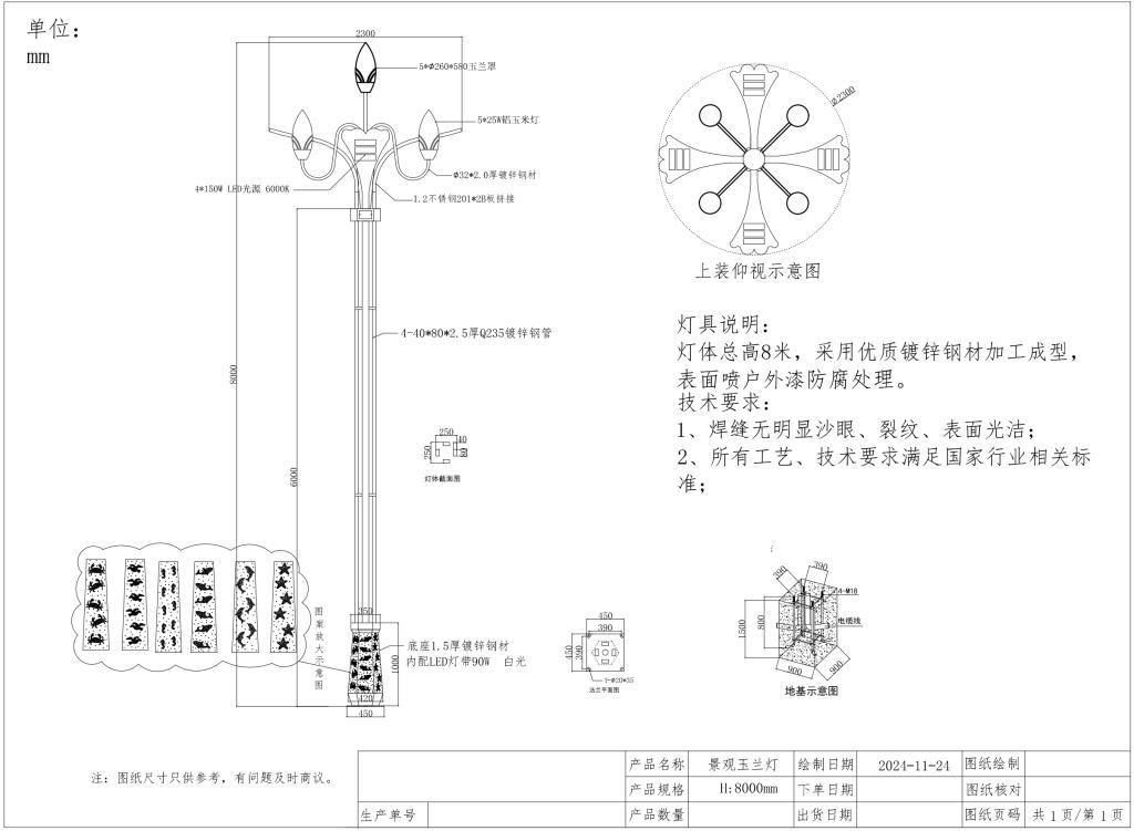 1.高杆莲花灯及灯杆必须为全新合格品。