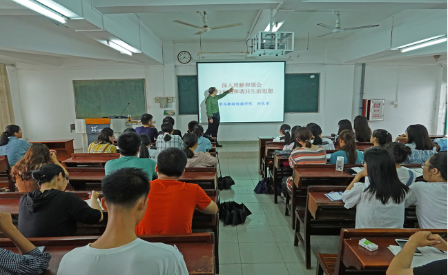 10月14日下午,文学与新闻传播学院党委书记阮彭林和院长孙长军,在湖光校区教学主楼703室为学院2020级全体班委上“思政第一课”。
