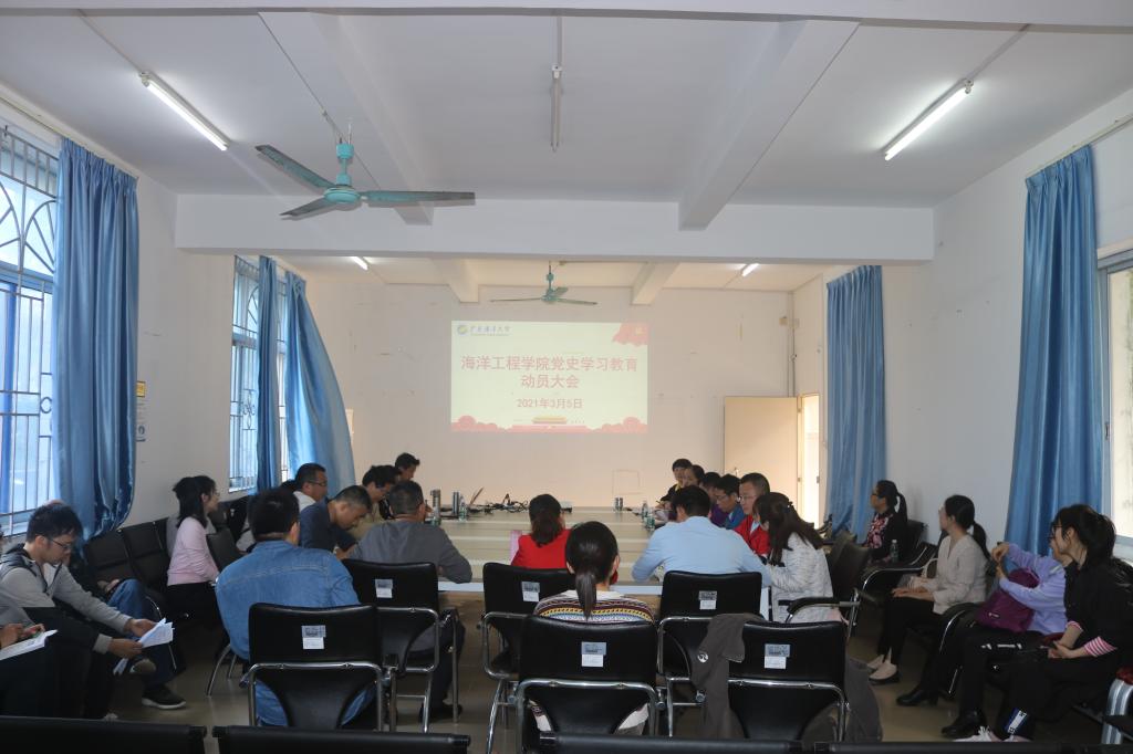 3月5日下午,海洋工程学院党总支在海滨教学楼212室召开党史学习教育动员大会,会议由党总支副书记尹霞主持,学院全体在岗教工党员参加会议。