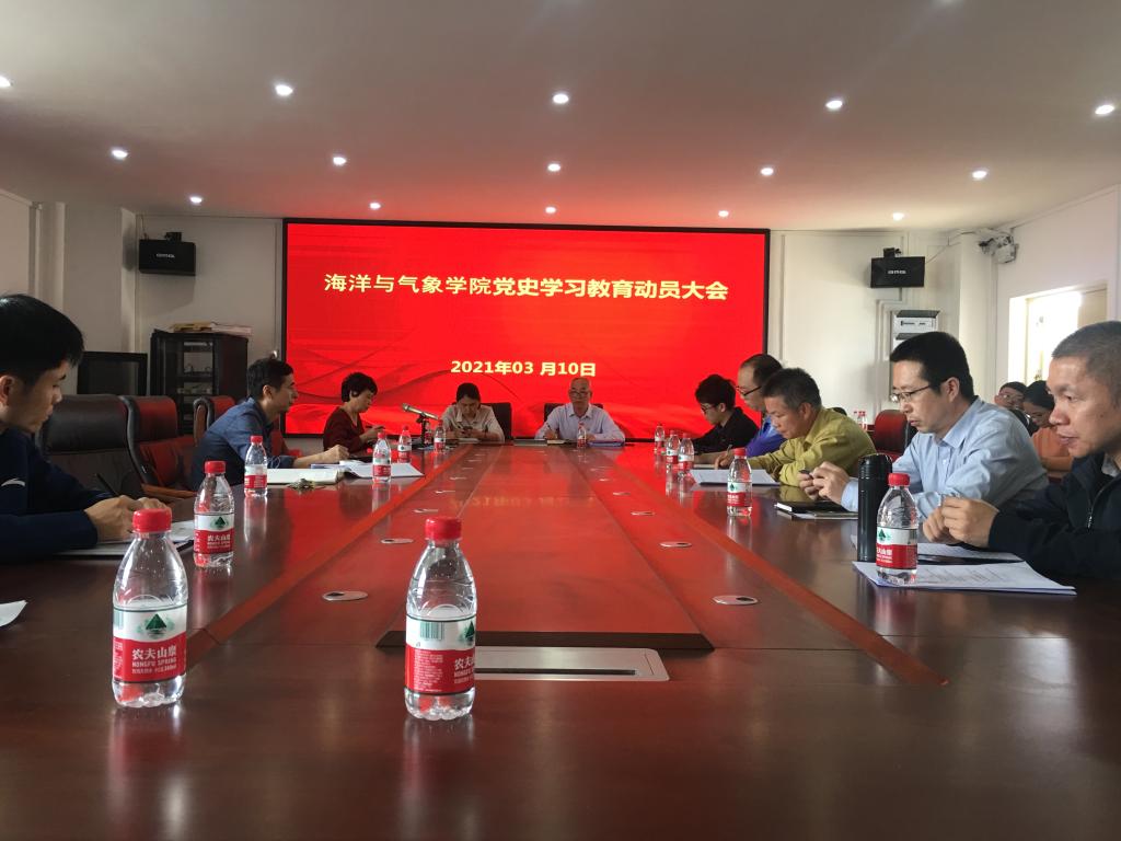 3月10日下午,海洋与气象学院党委在海科楼505会议室召开党史学习教育动员大会,学院领导、全体师生党员参会,会议由学院党委书记陈晓主持并作动员讲话。