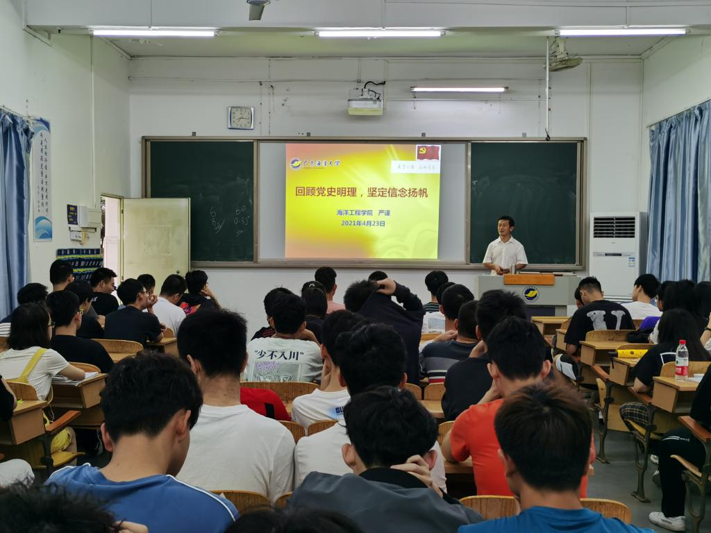 4月23日上午,海洋工程学院党总支书记邓伟、院长严谨分别在海滨校区教学楼101、102教室,为2020级学生200余人上春季学期“思政第一课”。