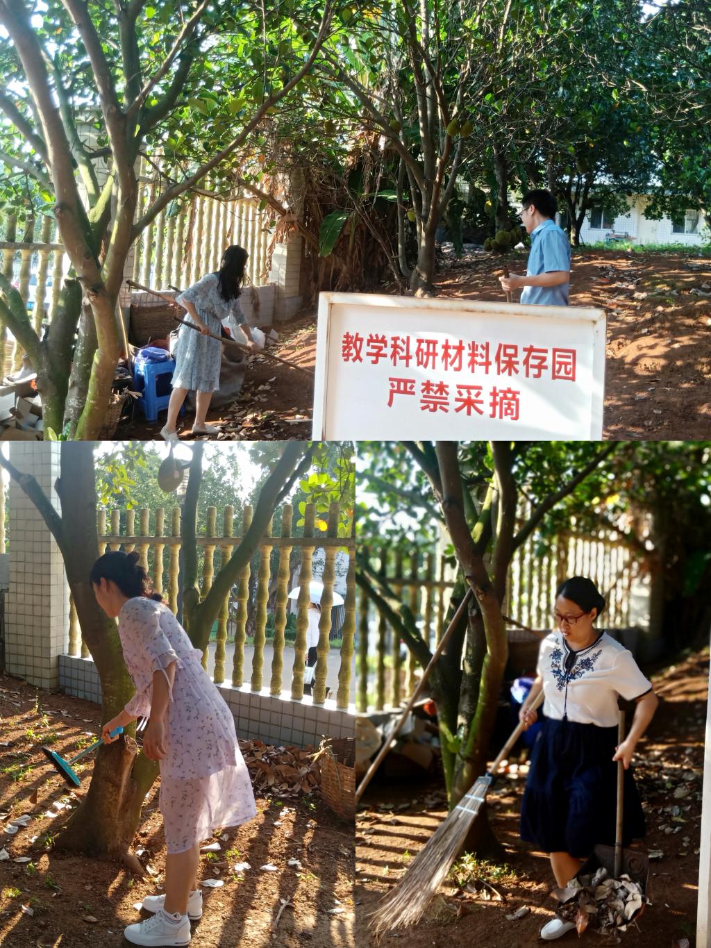 该活动是学院根据“我为群众办实事”要求结合林果基地环境、消防等问题需要大力整治确定的任务之一。在学院党委书记邓伟强、副书记陈嘉文和学院机关党支部党员的带领下,现场师生分成清扫清洗林果楼办公室内外卫生、清理基地大棚的树苗、打扫大院内外环境卫生、检查清理影响消防安全等工作小组。学院师生顶着烈日高温,发扬不怕脏、不怕苦,不怕累的精神,劳动干劲十足。经过大家的共同努力,顺利地完成工作任务,整理出一个洁净、安全的教学科研基地环境。