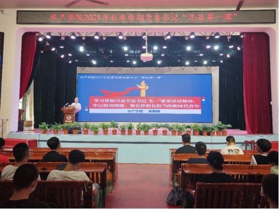 9月15日,水产学院2021年秋季学期书记院长“思政第一课”在湖光校区东区小礼堂开讲,学院党委书记梁朝辉、院长李广丽主讲。水产学2021级新生共450余人到场聆听学习。