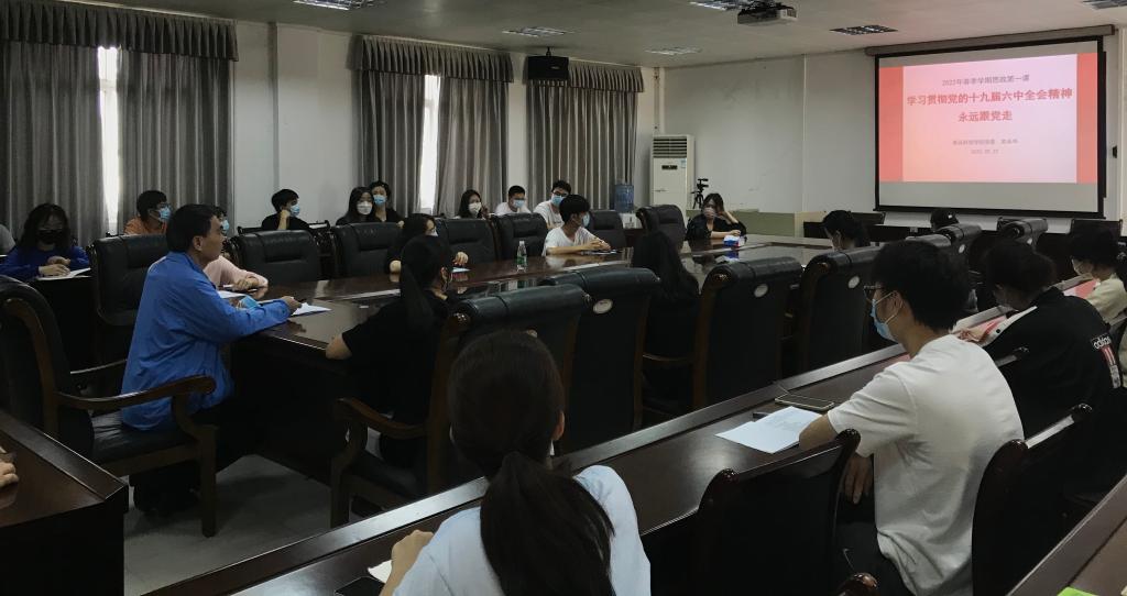 3月22日上午,食品科技学院党委书记苏永华在第三实验楼A105会议室为30名入党积极分子讲授了2022年春季学期“思政第一课”,报告题目为《学习贯彻党的十九届六中全会精神,永远跟党走》。