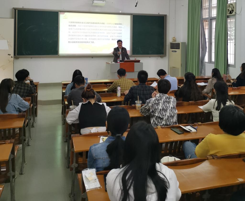 3月23日下午,马克思主义学院党委书记陈青松在霞山校区教学楼B202为学院研究生开讲春季“思政第一课”。