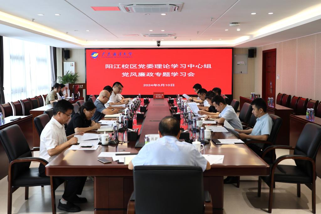 为增强全面从严治党永远在路上的政治自觉,推动党纪学习教育走深走实,5月10日上午,阳江校区党委理论学习中心组(扩大)开展党风廉政建设专题学习,深入学习贯彻习近平总书记在二十届中央纪委三次全会上发表重要讲话精神,贯彻落实《关于新形势下党内政治生活的若干准则》《今年会官方网站党员领导干部“八小时以外”活动监督管理规定》,开展党风廉政提醒集中谈话,签订党风廉政建设责任书。校党委常委、副校长,阳江校区管理办公室主任周昌仕主持会议。校区党委副书记丁永成以及校区各党总支书记、各机关部门临时负责人参加会议。