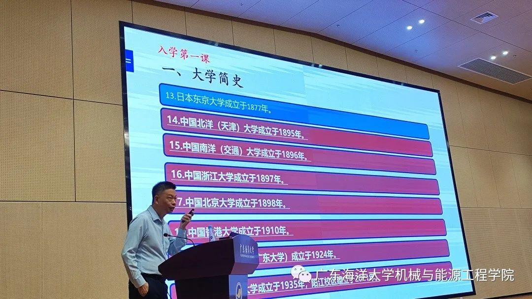 开学第一课。9月14日,学院在海纳楼113报告厅举办了开学第一课,学院全体教师及2022级全体新生参加了本次活动。本次主题教育活动由学院行政第二负责人王贵教授主持,党组织暨行政第一负责人陈扬枝教授主讲。在课上,陈扬枝教授以“我们的大学”为主题向大一新生阐述了“大学是什么?”以及“我们为什么要上大学?”等犀利的问题。两位教授的讲话引起了在场所有师生的共鸣,现场掌声雷动,此起彼伏。这一课意义深远,陈扬枝教授结合自己的大学经历,引导新生深入认识大学的理念、精神、文化和功能,引发了新生对大学生涯的思考,进一步坚定同学们在大学中砥砺前行、奋勇拼搏的决心,让每个同学都受益匪浅!