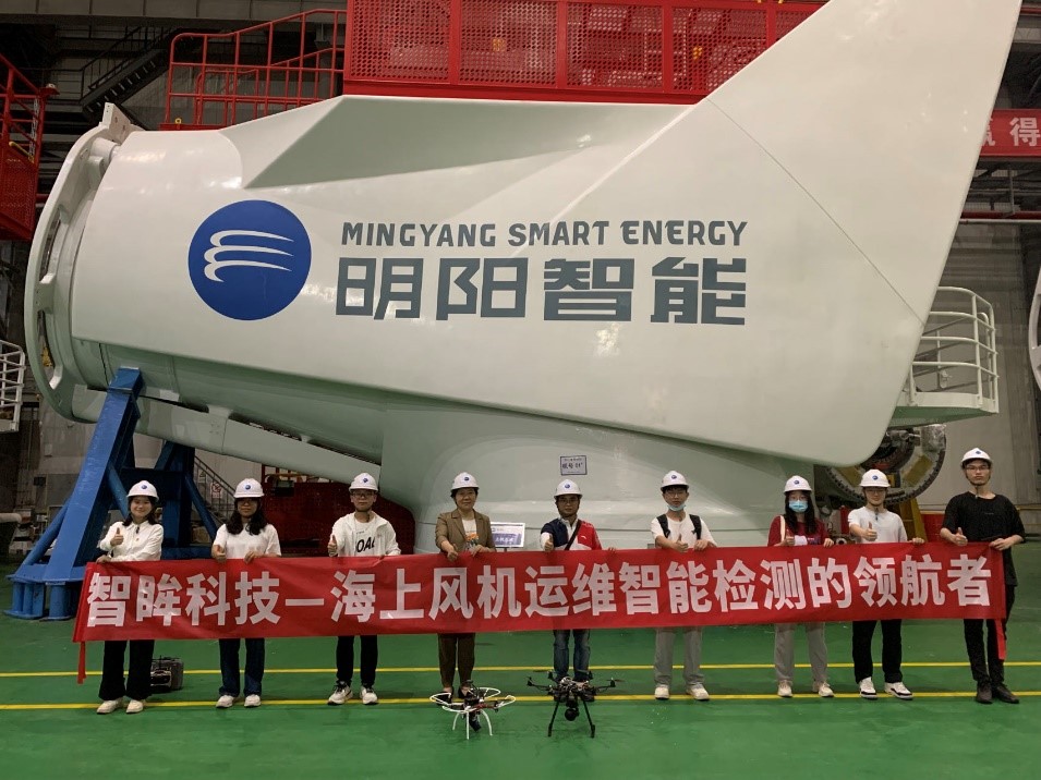 扎根实践、破解难题。智眸团队多次前往海上风电产业龙头企业——明阳智慧能源集团有限公司实践学习,并将“海保”系列产品运用到海上风机运维检测中。