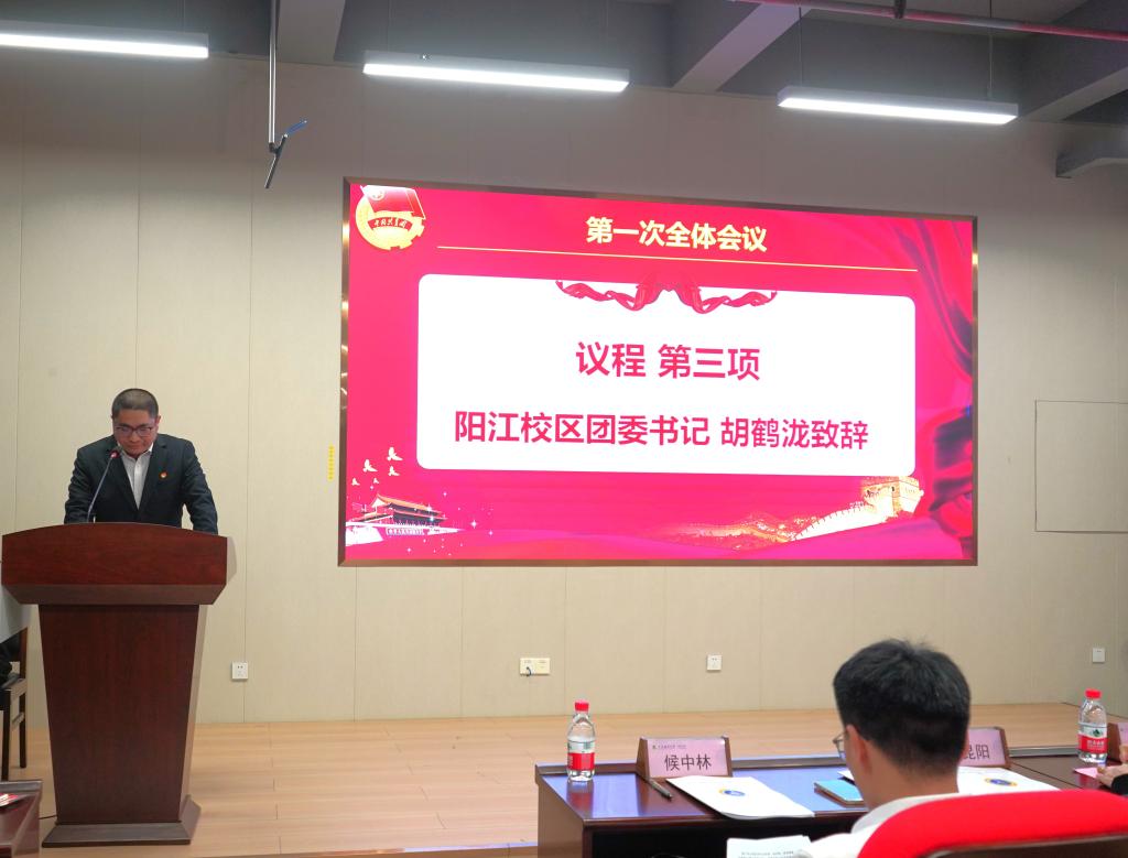 大会在国歌声中拉开序幕。胡鹤泷代表校区团委致辞。他充分肯定学院团学工作取得的成绩,并对学院团委和学生会工作提出希望。他要求学院团委和学生会要在党的二十大和二十届三中全会精神的指引下,以习近平新时代中国特色社会主义思想为指导,坚持学习先行,塑造青年思想的灯塔;坚持服务至上,化身热情服务的使者;坚持改革驱动,勇担时代创新的先锋;不断加强自身建设,提高自身能力和素质,让学院团学组织真正成为同学们想得起、找得到、靠得住的力量。