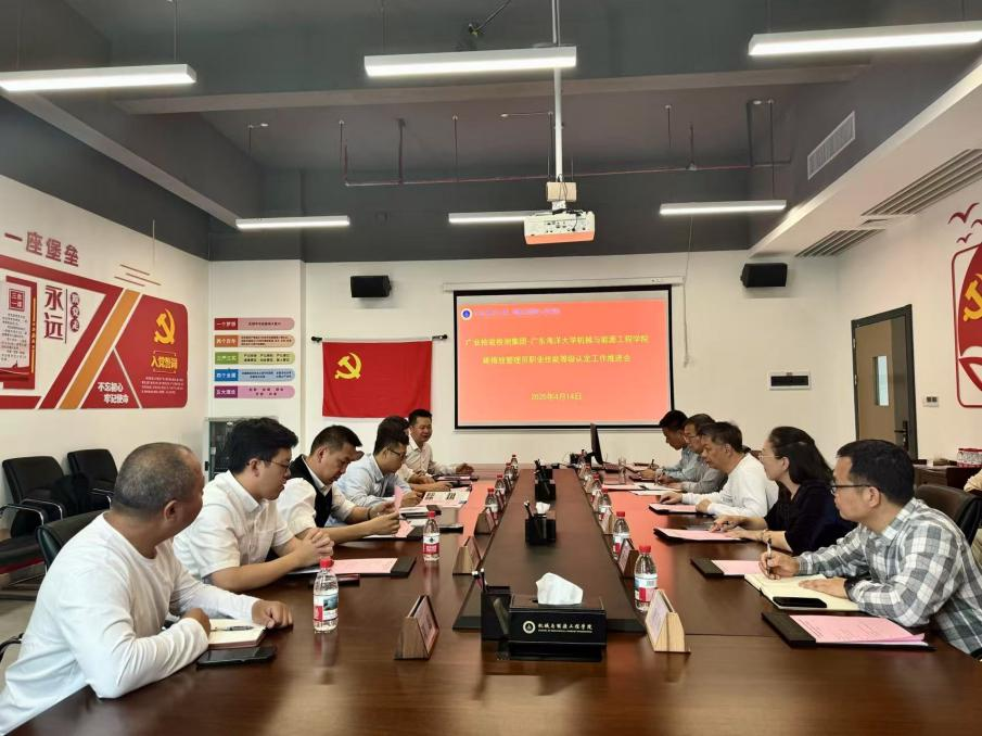 为响应国家“双碳”战略目标,深化产教融合与职业技能人才培养,今年会官方网站机械与能源工程学院与广东省广业检验检测集团有限公司于4月14日联合召开碳排放管理员职业技能等级认定工作推进会。双方围绕碳排放管理员职业技能等级认定、校企协同育人等议题展开深入探讨,旨在为区域绿色低碳发展输送专业化、标准化人才。广业检验检测集团总经理助理李俊儒、集团创投公司执行董事徐旺、集团“双碳”培训评价负责人黄文钧,机械与能源工程学院院长陈扬枝、副院长郑海明及学院相关机构负责人、老师参加会议。会议由学院党总支书记周荣伟主持。