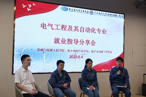为深化产教融合,助力电气工程及其自动化专业首批毕业生职业规划与发展,6月3日至4日,机械与能源工程学院联合阳江市电机工程学会在阳江校区厚为楼1301报告厅举办电力前沿技术与就业指导会,阳江市电机工程学会常务副秘书长姚日秋、副秘书长张弛一行及学院师生百余人参加,郑海明副院长致辞。