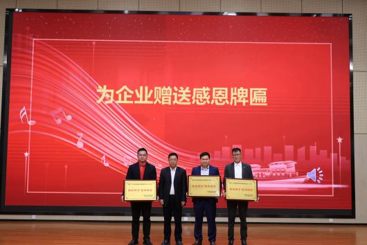 校区党委副书记丁永成代表校区向企业领导赠送“奖学育才德泽四方”牌匾。牌匾上八个大字既是对企业爱心善举的高度赞誉,也凝聚着校企携手育人的深厚情谊。