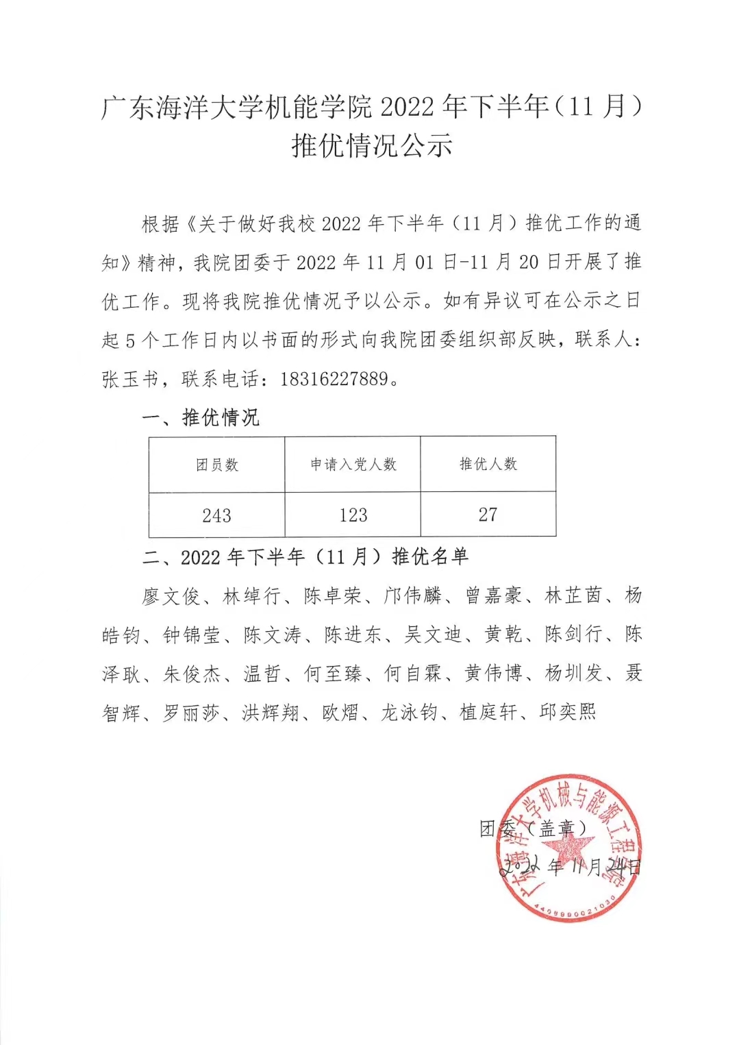 今年会官方网站机械与能源工程学院2022年下半年(11月)推优情况公示