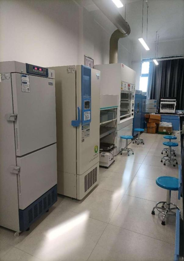 生物化学实验室承担食品科学与工程学院三个专业(食品科学与工程、食品质量与安全、食品营养与健康)共八个班级的生物化学实验教学任务,主要有烘箱、低速离心机、通风橱、水浴锅、制冰机、电泳槽等仪器。实验课程有:氨基酸纸层析法; 牛乳中酪蛋白的制备及颜色反应;醋酸纤维薄膜电泳法分离血清蛋白质; 动物肝脏DNA的提取与鉴定; 影响酶促反应的因素—温度、pH、激活剂及抑制剂; 肝脏谷丙转氨酶活力测定; 维生素 C 的定量测定(2,6-二氯酚靛酚滴定法); 血液中葡萄糖的测定(邻甲苯胺法)。