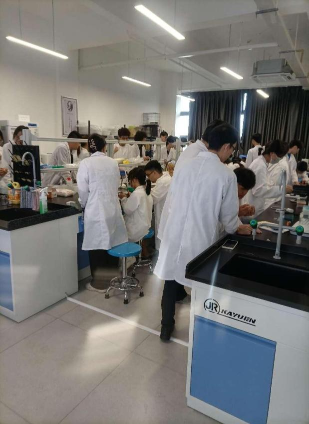 食品营养与化学实验室总面积约96平方米,承担食品科学与工程学院三个专业(食品科学与工程、食品质量与安全、食品营养与健康)共八个班级的《食品营养与化学实验》、《保健食品与功能评价》的实验教学任务,主要仪器有低速冷冻离心机、烘箱、分光光度计、酶标仪等仪器。实验课程有:《食品营养与化学实验》的食品中水分活度的测定、美拉德反应初始阶段的测定、方便食品中淀粉α-化程度测定、脂肪氧化及稳定性的测定、蛋白质的功能性质、绿色果蔬中叶绿素的提取与含量测定、植物提取物中总黄酮含量及抗氧化活性的测定、鱼肉蛋白质的酶解及酶解产物中短肽含量的测定以及《保健食品与功能评价》的保健食品中总黄酮和总多糖含量的测定实验及使用斑马鱼模型验证保健食品的降血脂功效实验。