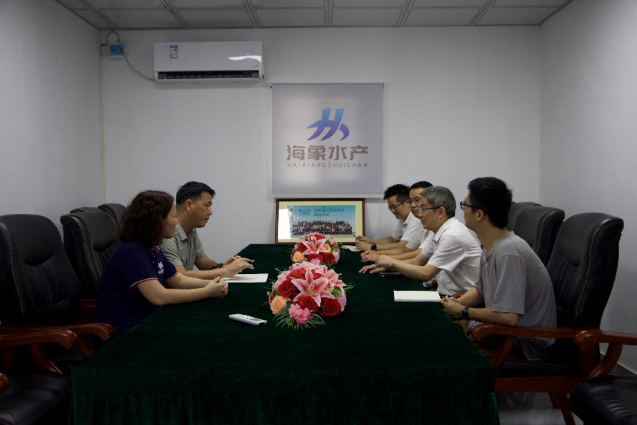 朱思明院长一行和海象水产相关负责人交谈