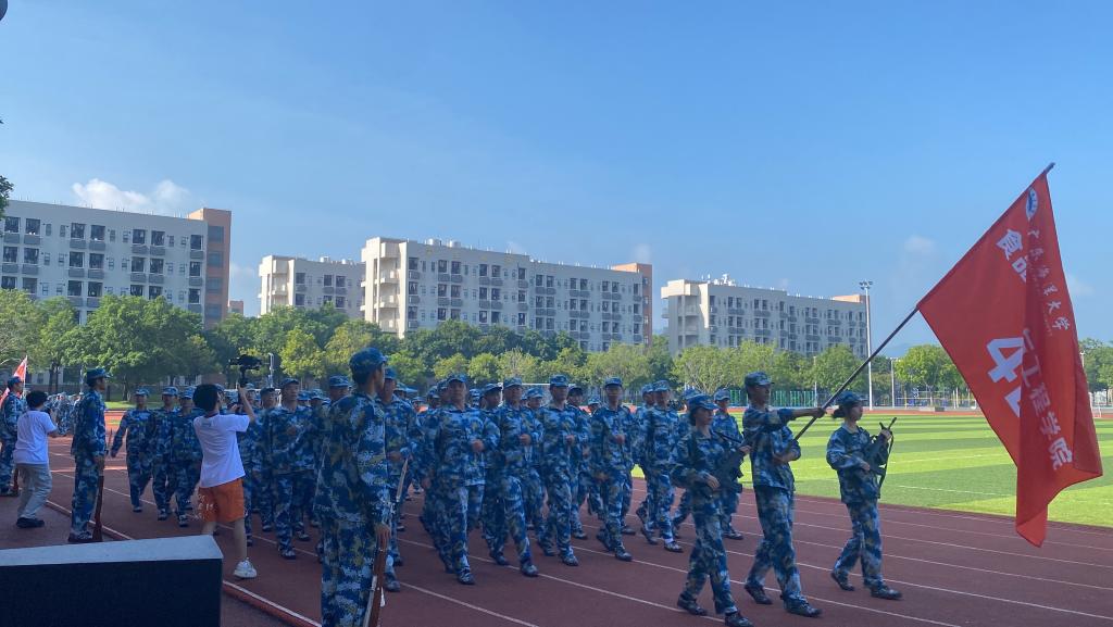 沙场秋点兵,青春正激昂。9月27日,我院2024级173名新生向着骄阳迎来了2024级新生军训成果汇报暨总结表彰大会。军训旅政治委员谭平,阳江校区党委副书记丁永成、陈永强,承训单位有关领导出席大会。校区相关职能部门负责人,各学院党总支书记、全体教官、跟训教师、2024级全体新生等900多名师生参加大会。大会由丁永成主持。此次军事技能考核旨在增强学生的国防意识,提高军事技能,培养坚韧不拔的意志品质,为未来的学习和生活打下坚实基础。