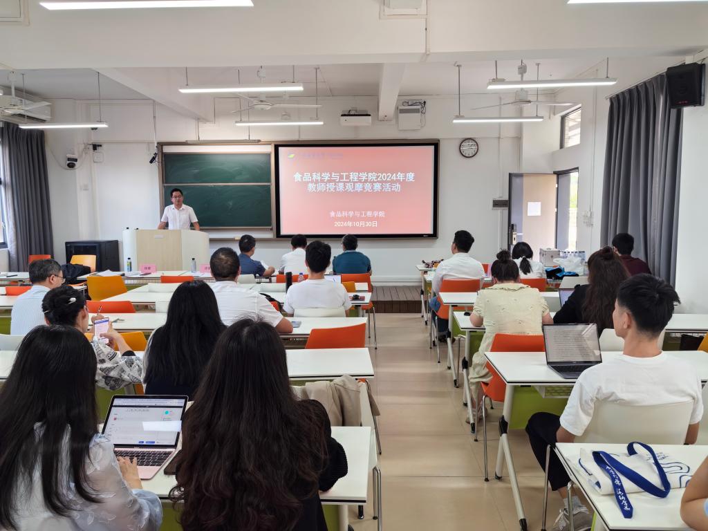 为进一步打造高素质、专业化教师队伍,不断提高学院教师业务素质和教学技能,10月30日下午,食品科学与工程学院在慎思楼B204成功举办了2024年度教师授课观摩竞赛活动。本次活动由学院副院长杨新河主持,阳江校区教学督导组组长吴卫祖、学院党总支书记夏杏洲、院长朱思明及学院全体教师参加。