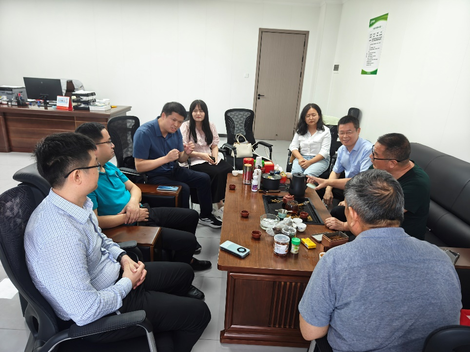 为进一步深化产教融合,强化院企合作,2025年5月7日,食品科学与工程学院党总支书记夏杏洲带领学院专家团队7人,深入广东省壹信生物科技有限公司(以下简称“壹信生物科技”)开展调研,壹信生物科技董事长岑长战、研发总监周明印陪同调研。