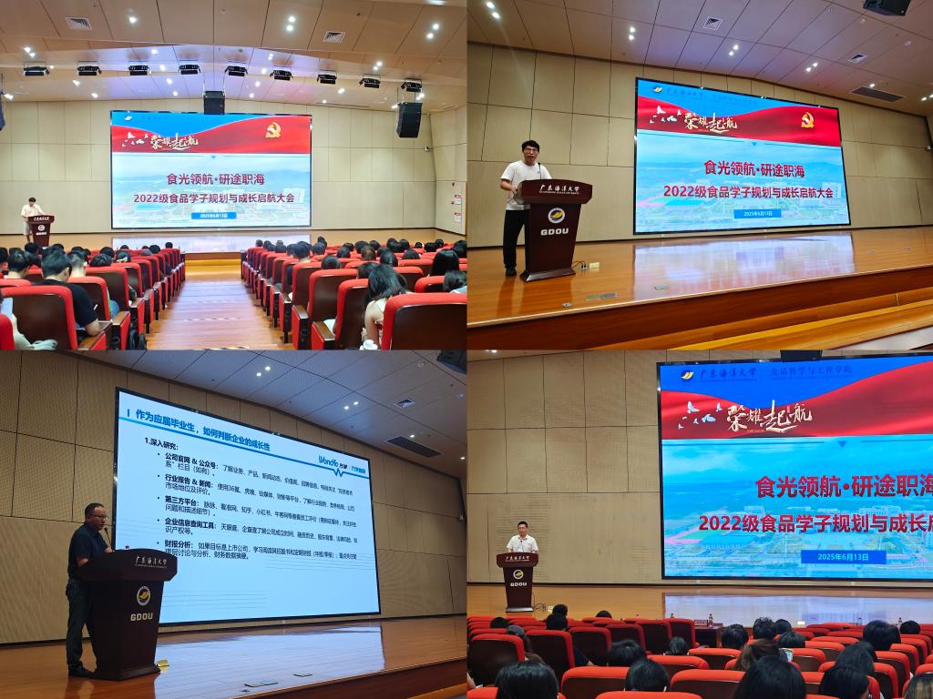 6月13日,食品科学与工程学院“食光领航·研途职海”——2022级食品学子规划与成长启航大会在海纳楼113召开。活动以优秀学子经验分享、企业专家实战指导、就业政策解析等多元形式,为学生提供精准化、专业化发展指引。特邀万孚生物旗下万孚健康科技有限公司总经理助理李东、人事经理庞木兰出席,学院党总支书记夏杏洲、教师代表、2021级优秀学生代表刘梓炜及2022级全体食品学子参加。