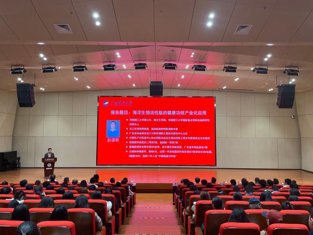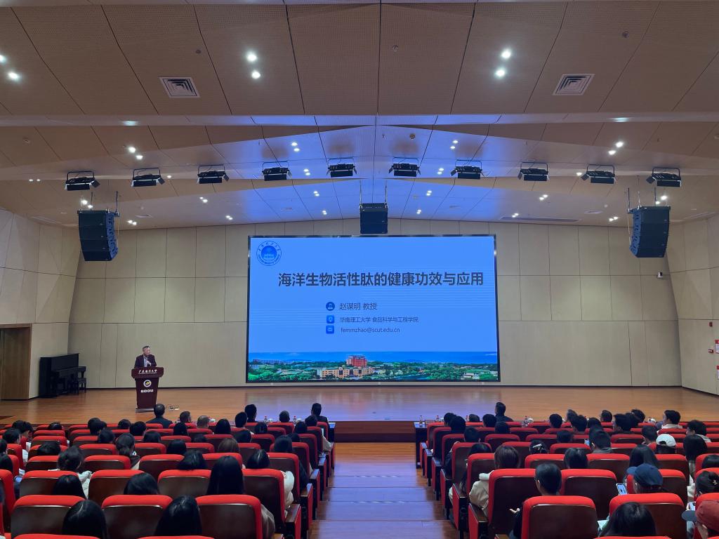讲座中,赵谋明教授结合我国人口老龄化趋势与慢性代谢疾病现状,分析了健康食品产业向精准营养干预转型的发展方向。他重点介绍了海洋生物活性肽在改善记忆、降低尿酸等方面的健康功能,并分享了其团队在海洋鱼活性肽高效制备技术、功效机制验证(涵盖细胞、动物及临床实验)以及产业化应用方面的最新研究成果,为海洋生物资源的高值化利用和大健康产业发展提供了重要思路。