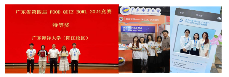 科创竞赛方面,学院学生荣获广东省第四届FOOD QUIZ BOWL 竞赛特等奖、第十四届“挑战杯”广东大学生创业计划竞赛金奖、第四届“华数杯”全国大学生数学建模竞赛本科生组优秀奖等国家和省部级竞赛5项。学院为深入贯彻产学研思想,组织或协办了多次大型活动。如鸡尾酒调配大赛、“美味源”杯厨艺大赛、岭南特色果蔬绿色加工产业学院果酒果啤品鉴会、产业学院大学生商标酒标设计大赛、2024中国葡萄酒校园公开课等。