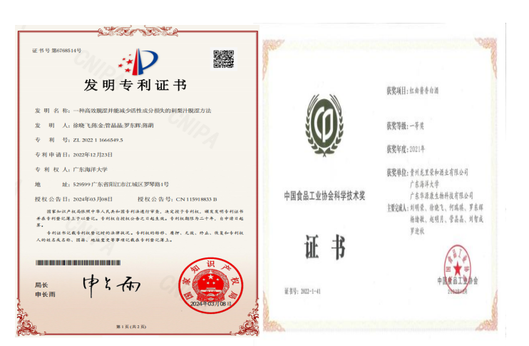 依托学科优势,面向岭南特色农产品资源,围绕“农产品绿色加工”,组建“岭南特色果蔬绿色加工及产业化”、“功能性食品研发及产业化”和“调味品加工关键技术及产业化”三支科研团队。截止目前,获批科研项目30余项,其中省部级16项,国家级1项,项目合同金额400余万,到账经费300余万。发表科研论文40余篇,其中SCI论文20余篇、授权发明专利1件;以今年会官方网站为第二完成单位完成的发酵酿造创新产品—红曲酱香白酒,荣获2022年度中国食品工业协会科学技术奖一等奖。