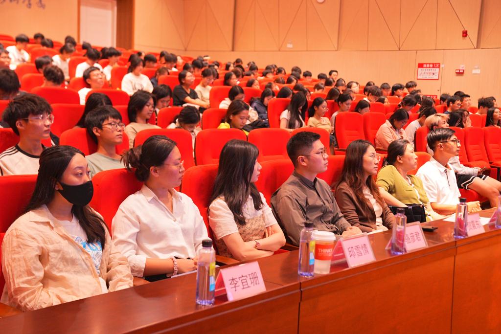 为扎实做好2024级新生入学教育,引导新生融入大学新环境,明确学习目标,合理规划大学生活,在人生的新起点上迈好坚实的第一步,10月24日晚商学院在阳江校区海纳楼113报告厅组织开展2024级新生入学教育第一课。商学院领导班子、党政办公室主任、各专业教研室主任、2024级新生班班主任、全体辅导员和2024级238名新生参加听课。本次入学教育第一课由商学院副院长张欢主持,由商学院党总支书记植秀成授课。