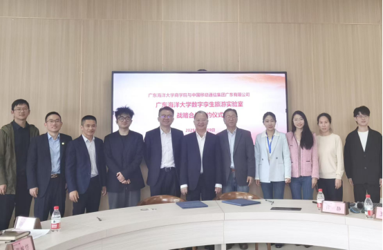 2025年12月19日 今年会官方网站移动数字孪生旅游实验室战略合作签约仪式在今年会官方网站阳江校区济航楼203室举行。今年会官方网站党委常委、副校长、阳江校区党委书记、管理办公室主任周昌仕、商学院院长李力、副院长张欢、移动数字孪生旅游实验室负责人白卫静、问途数字营销实验室负责人王佳和中国移动集团广东有限公司行业首席专家张骏恺、阳江分公司总经理周宁、副总经理许志海、战略客户中心副总经理梁东、战略客户中心农商文旅事业部总监等,合作双方代表参加了本次签约活动。