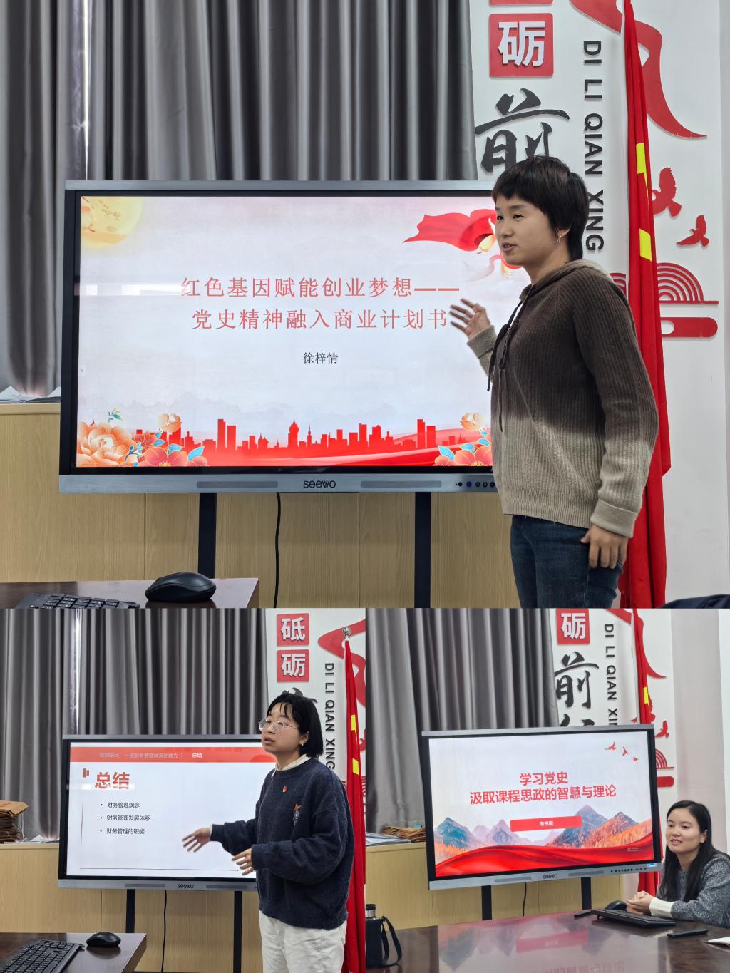 2024年12月25日,商学院教工第一党支部在商学院党员活动室开展主题党日活动,党支部12名党员全体做了“党史学习教育+课堂思政〞的案例分享。