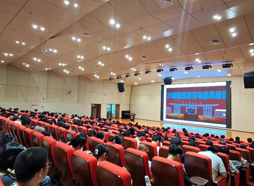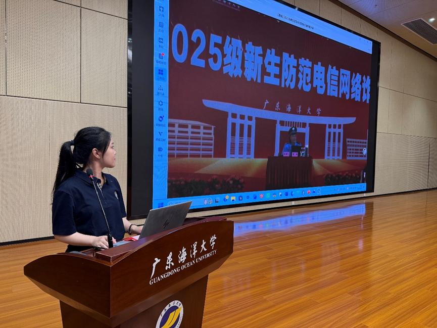 在防范电信网络诈骗专题讲座中,公安人员以“案例 + 实操”形式为新生敲响安全警钟,从“新生因轻信‘无抵押校园贷’背负高额利息”,到“学生刷单被骗近万元生活费”,直观呈现诈骗分子的话术陷阱与作案流程,让新生深刻认识到诈骗的隐蔽性与危害性。