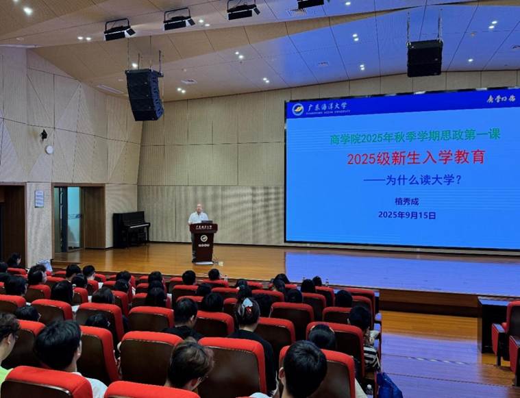 在2025年秋季学期思政第一课中,学院党总支书记植秀成为新生们作“为什么读大学?”为主题的报告,通过“海大发展历史和发展愿景”“新时代青年的责任和使命”“中国共产党做了什么”“知校爱校,护校荣校”“大学生自我提升和完善”和“特别提醒”等六方面进行授课。植秀成教育同学们要深化知校爱校、护校荣校意识,主动了解学校发展历程与办学理念,以实际行动维护学校声誉形象;要铭记历史脉络、传承红色基因,从校史与国家发展中汲取奋进力量,以奋发图强的姿态勇担时代重任;要充分利用大学优质教育资源与平台优势,在专业学习中夯实基础、在实践锻炼中增长才干,不断完善自我、提升核心竞争力;要厚植爱党爱国情怀,深刻感悟党和国家的关怀培养,将感恩之心转化为报国之行;同时要增强网络安全防范意识,自觉学习网络安全知识,严格遵守网络法律法规与校纪校规,坚持文明用网、理性发言,共同营造清朗安全的网络环境。