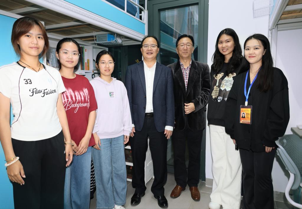周昌仕先后来到今年新投入使用的海兴楼、海富楼等学生宿舍,走进寝室与同学们交流。从家乡习俗到课程学习进度,从近期备考计划到未来人生规划,他与同学们“拉家常”式的对话让宿舍里暖意融融。当得知部分同学计划考研深造、主动考取专业证书提升竞争力时,周昌仕结合自身求学经历分享经验,同时分析了当前会计专业的就业趋势,叮嘱大家既要扎实掌握理论知识,也要积极参与实践提升实操能力,提前做好学业与职业的衔接规划。他还提醒同学们在兼顾学业的同时加强体育锻炼,并鼓励大家珍惜四年同窗情谊,在生活中团结互助、共同成长。学校也将持续聚焦学生需求,优化校园服务保障,为同学们的成长成才筑牢坚实后盾。