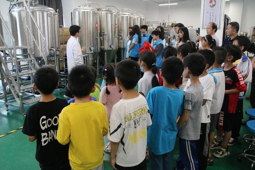参观完教学楼后,小朋友们来到了食品科学与工程学院。小朋友们参观了果蔬绿色加工产业实验室,在实验室成员的讲解下,认识了果蔬加工和啤酒酿制的实验室仪器与装置,了解了啤酒酿制的全过程。小朋友们对实验室的设备和流程产生了浓厚的兴趣并积极提问,志愿者们耐心地向他们介绍大学里的科研、实验方面的知识。