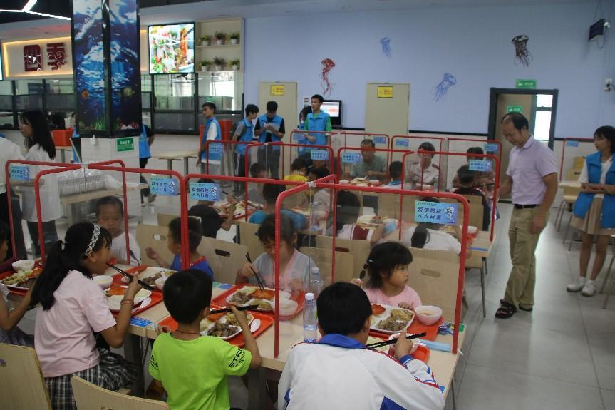 最后,小朋友们来到了桃李食苑,志愿者们早早准备好丰盛的美食菜肴,小朋友们迫不及待地品尝起大学的饭菜,体验大学饭堂的用餐环境。就餐完毕以后,志愿者们还带来了海大的文创礼物赠予大岗小学的全体师生们留作纪念。